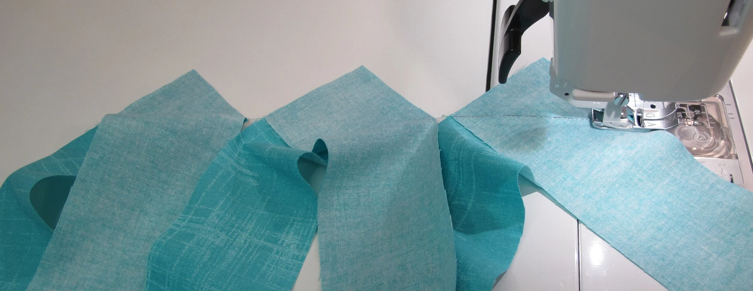 Chain piece the binding strips together (figure 3). Trim seam allowances to ¼” and press open.
