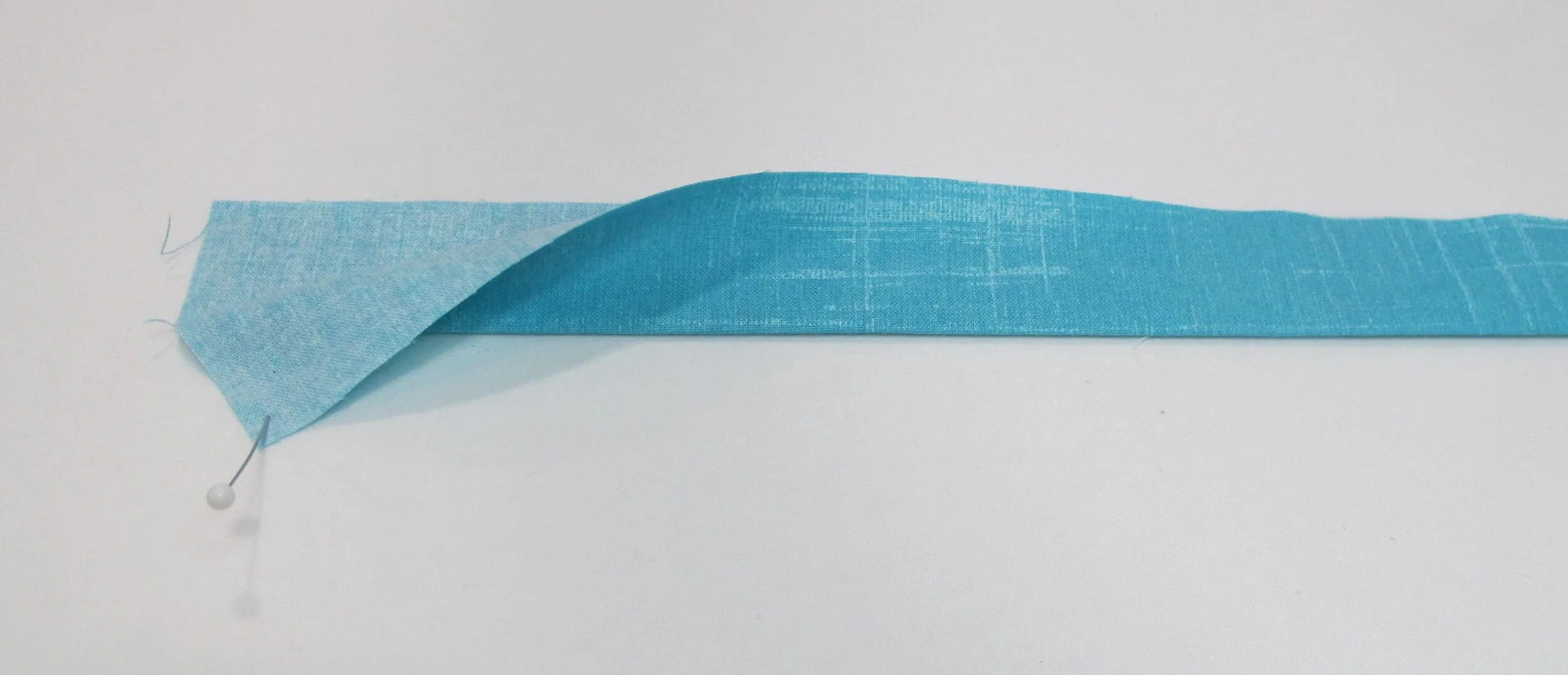 Once binding strips are cut from the width of the fabric (selvedge to selvedge) the selvedge ends need to be trimmed off at a 90º angle to get a perfectly squared off end. (*** I personally never use bias binding on my quilts unless I'm making a quilt with scalloped or curved edges.)