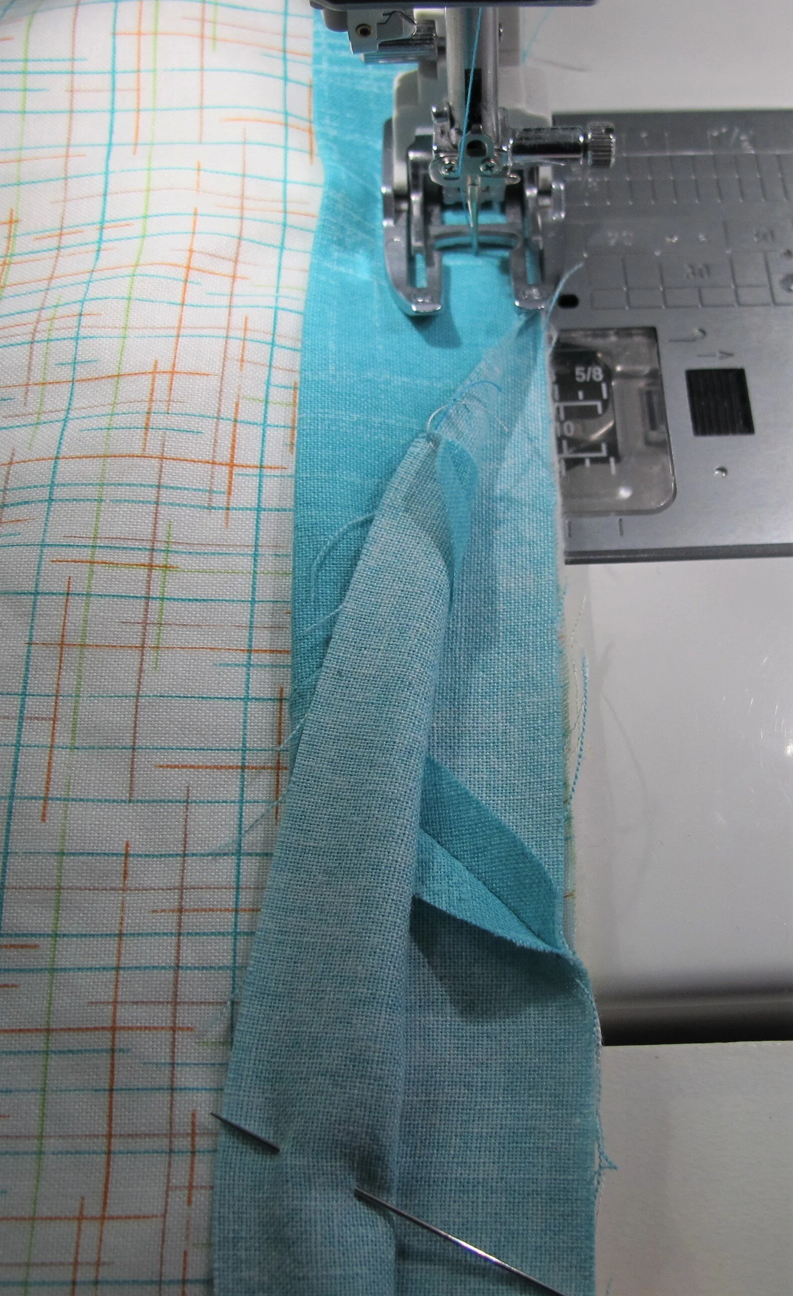 This isn't really necessary, but I press the binding away from the backing (figure 17)...I find it allows the binding to turn to the front more easily.