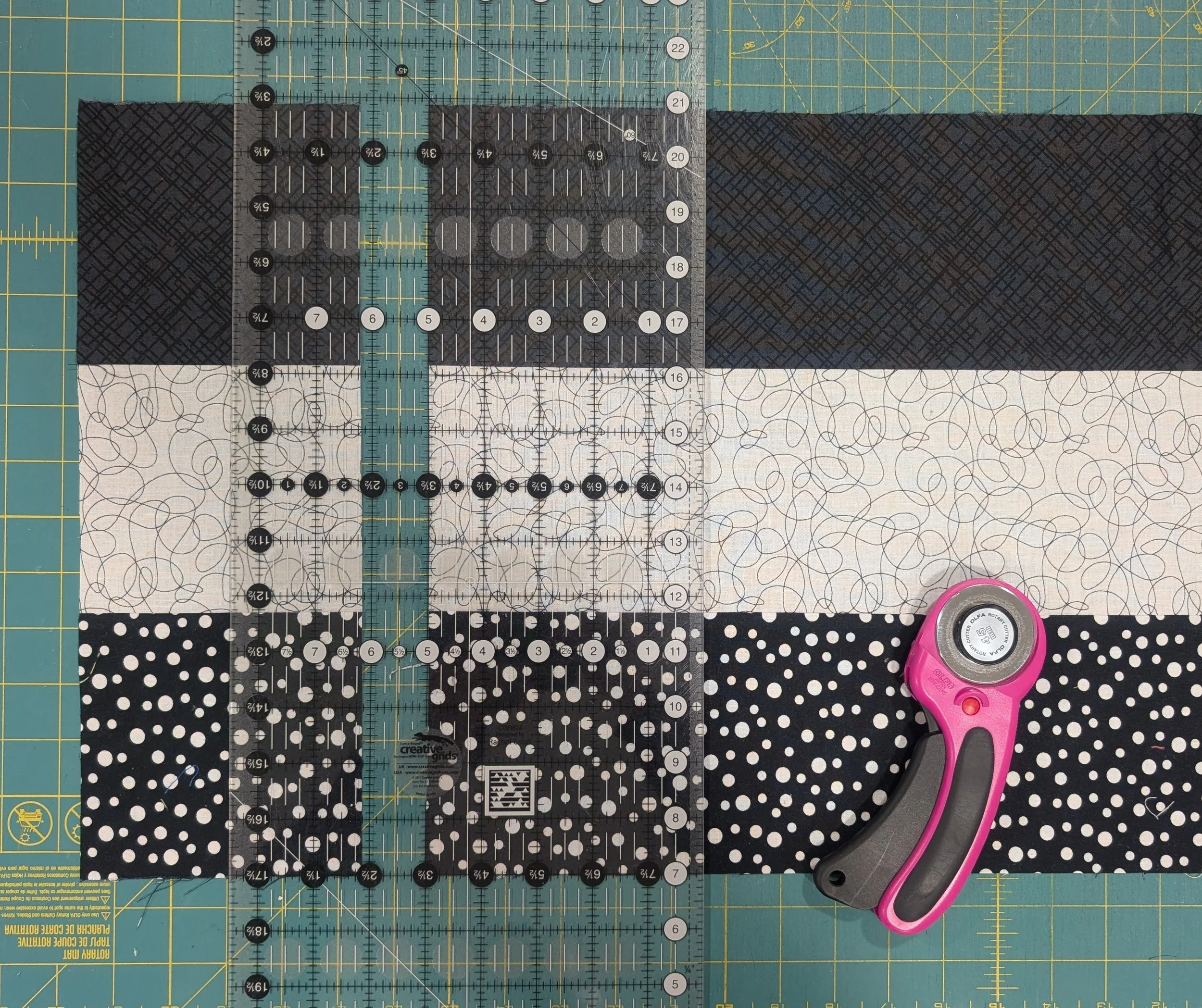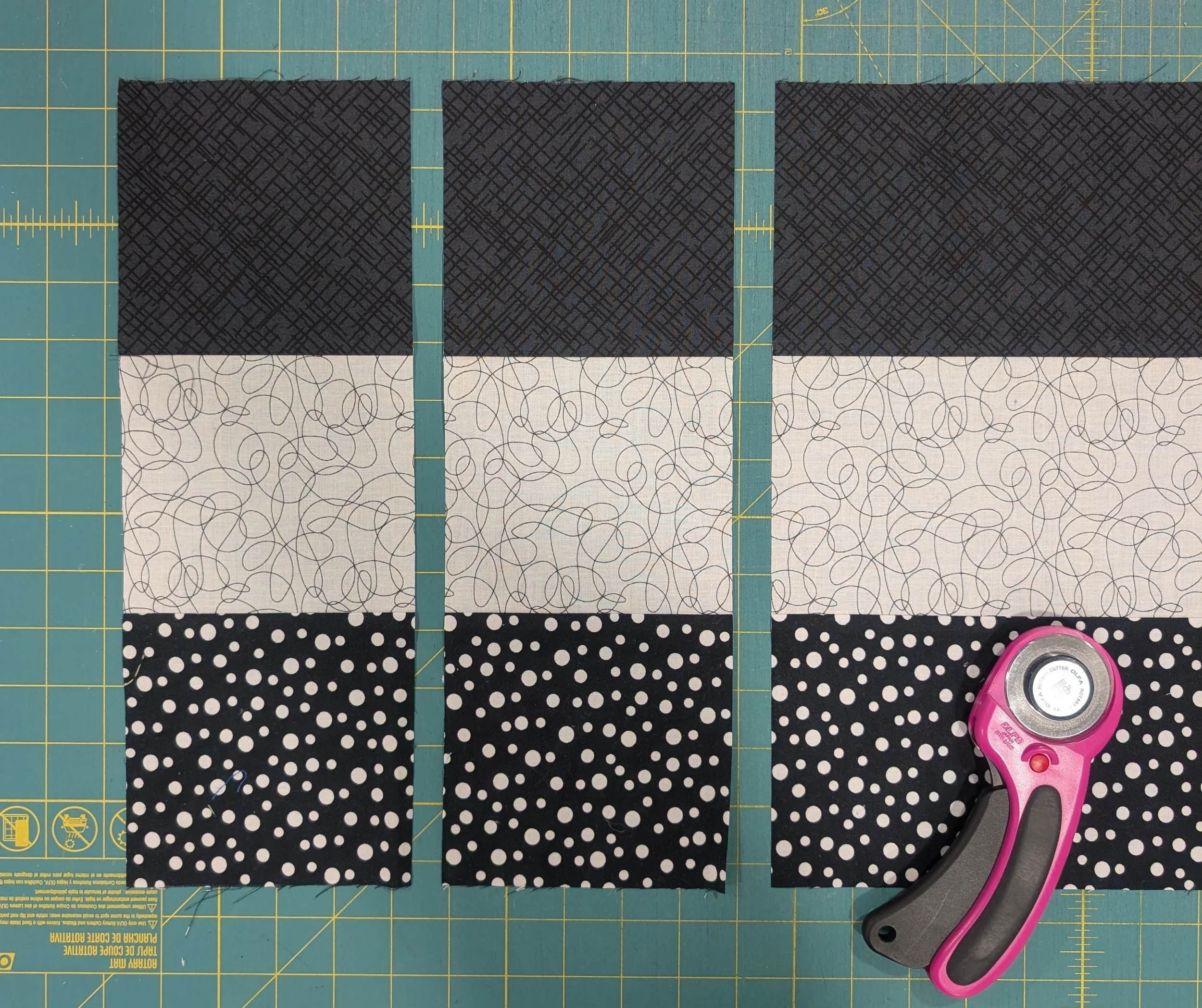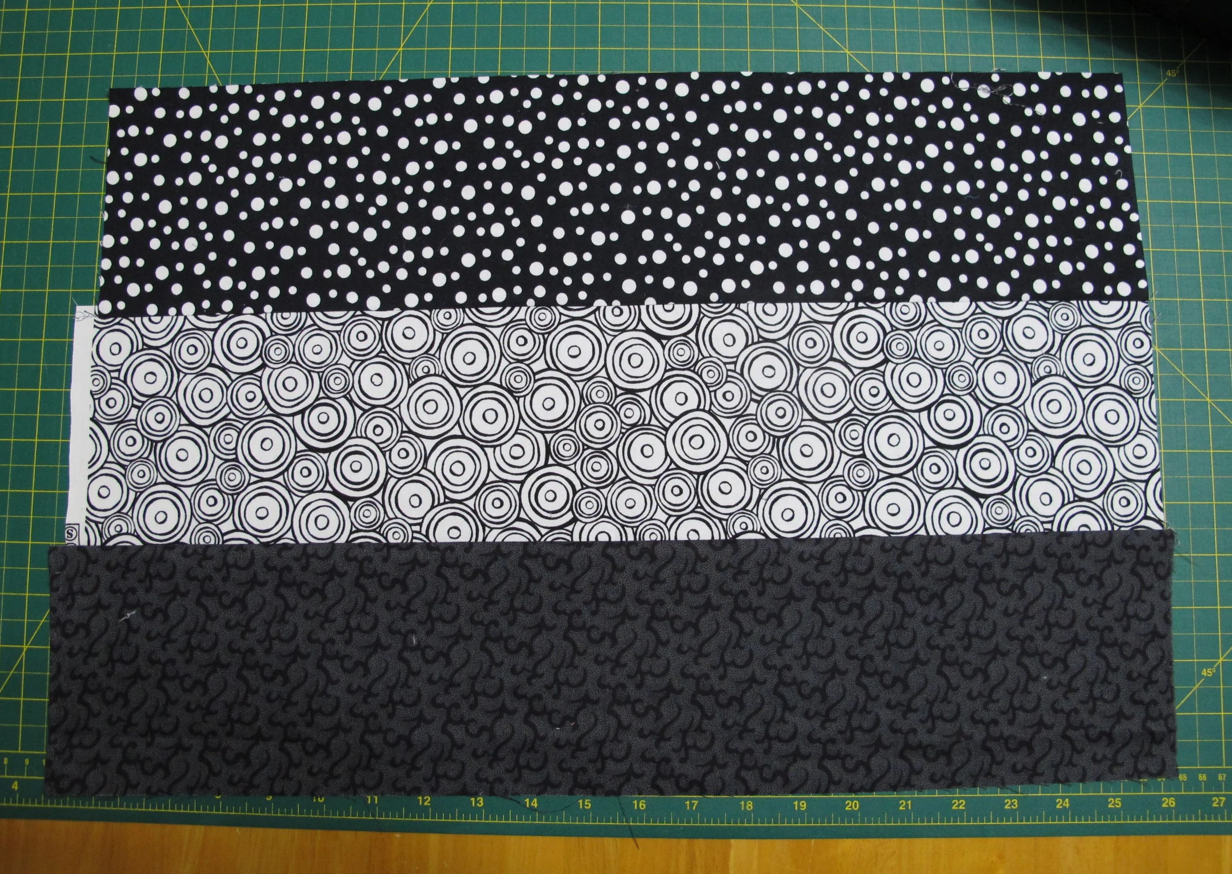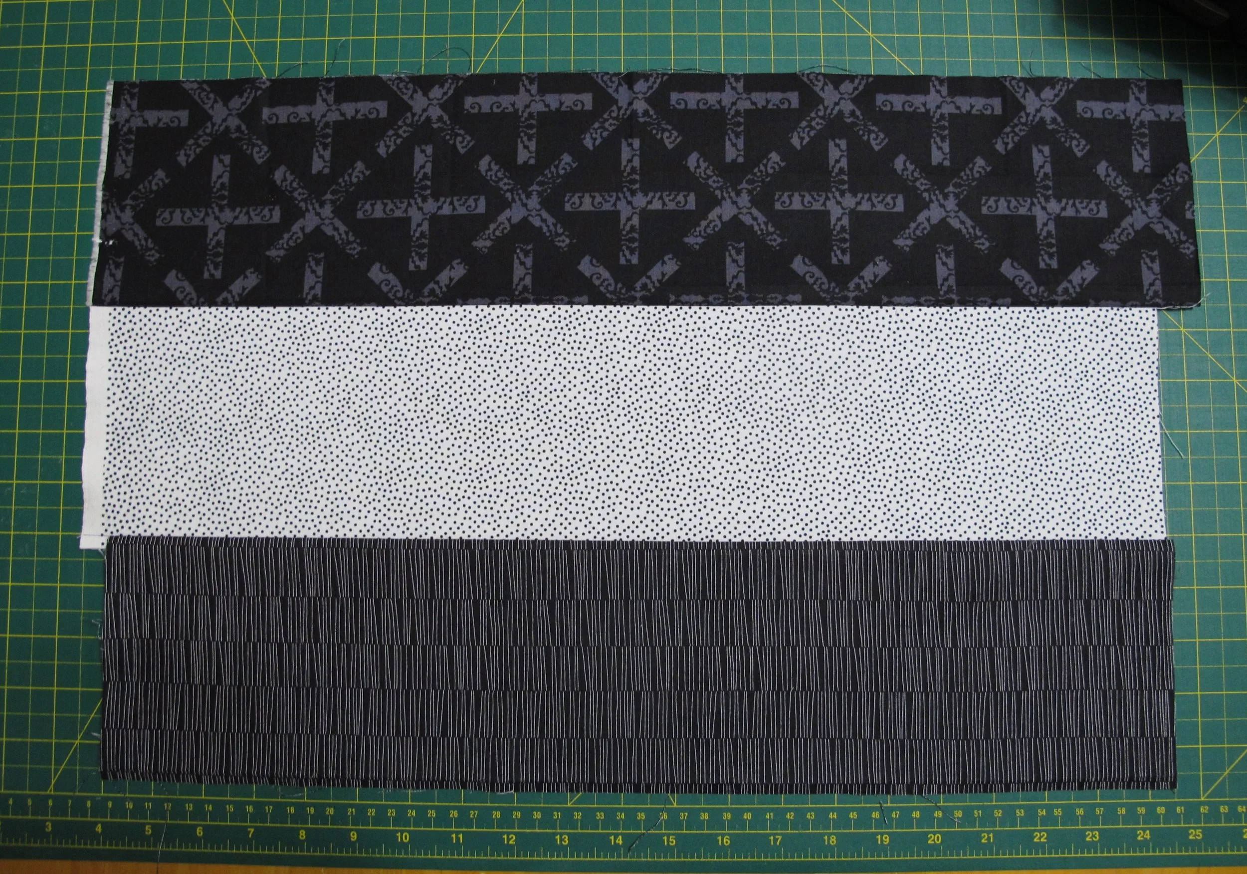make 3 strip sets, press seams toward centre strip (Coordinate #2)