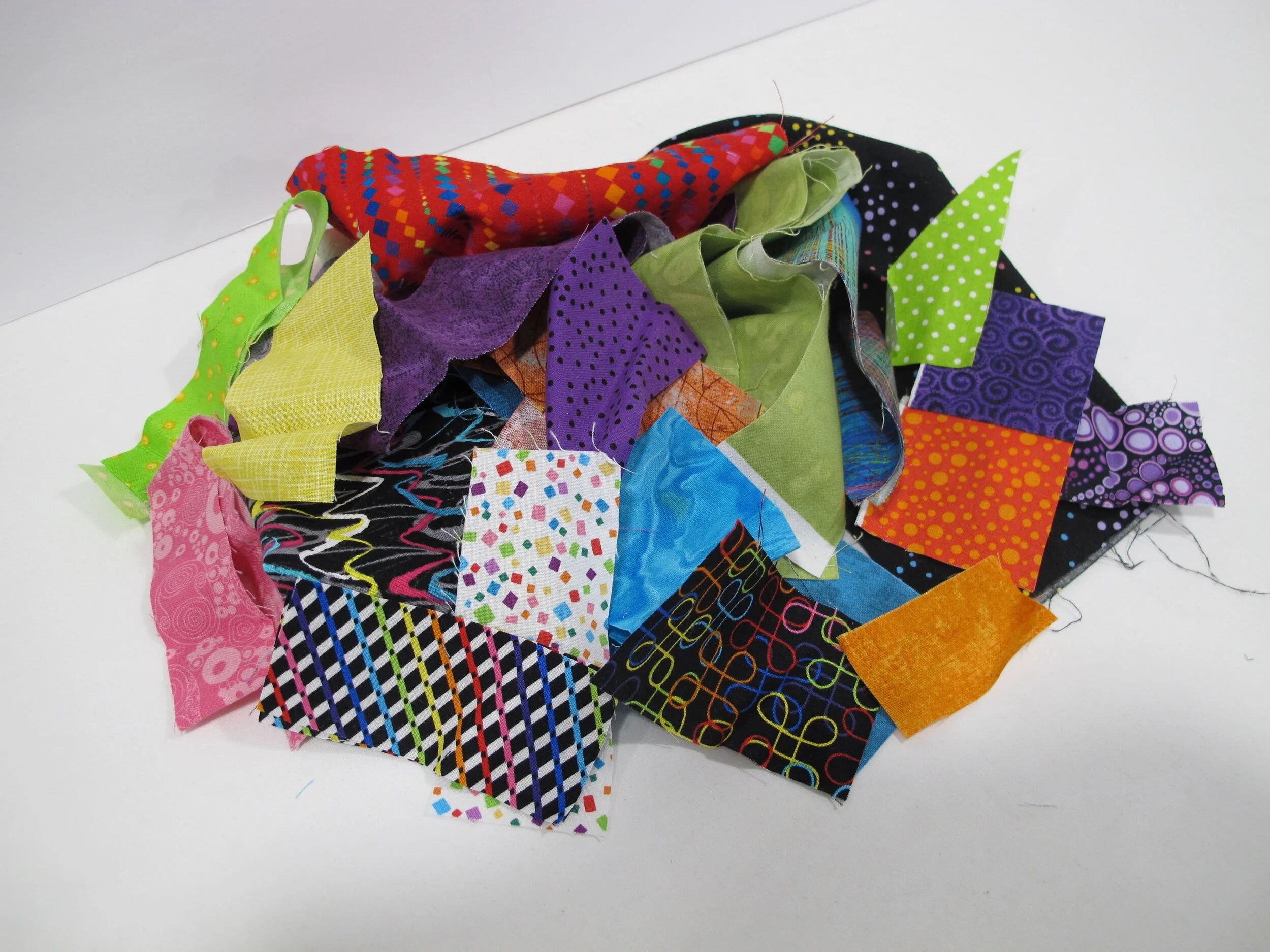 Bust those scraps. Is your scrap bin overflowing? Plan a scrappy quilt using flying geese, or half-square triangles, or 2 ½” squares...cut up all your leftover bits to work with your new planned quilt and put them in a separate container. Once you have enough cut you can start the new quilt.