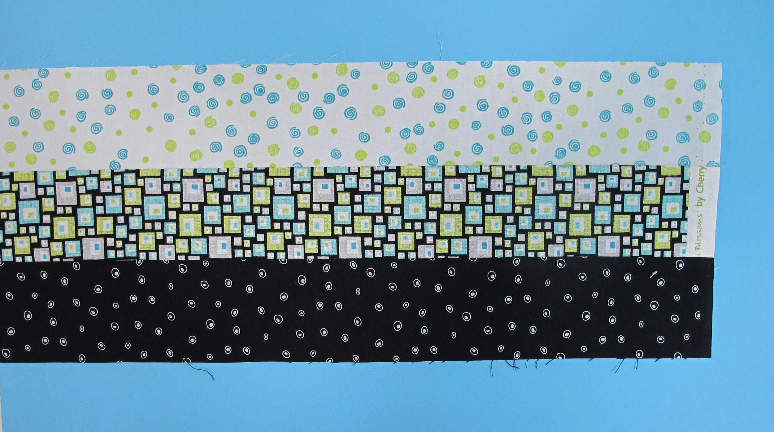Referring to the photo at the top of the page, starting with Row 1 at the top, lay out the rows one above the other making sure to alternate the two rows ending with Row 1 again at the bottom. Notice that the light and dark strips create a diagonal zig-zag design. Stitch the rows together and press seams in one direction.