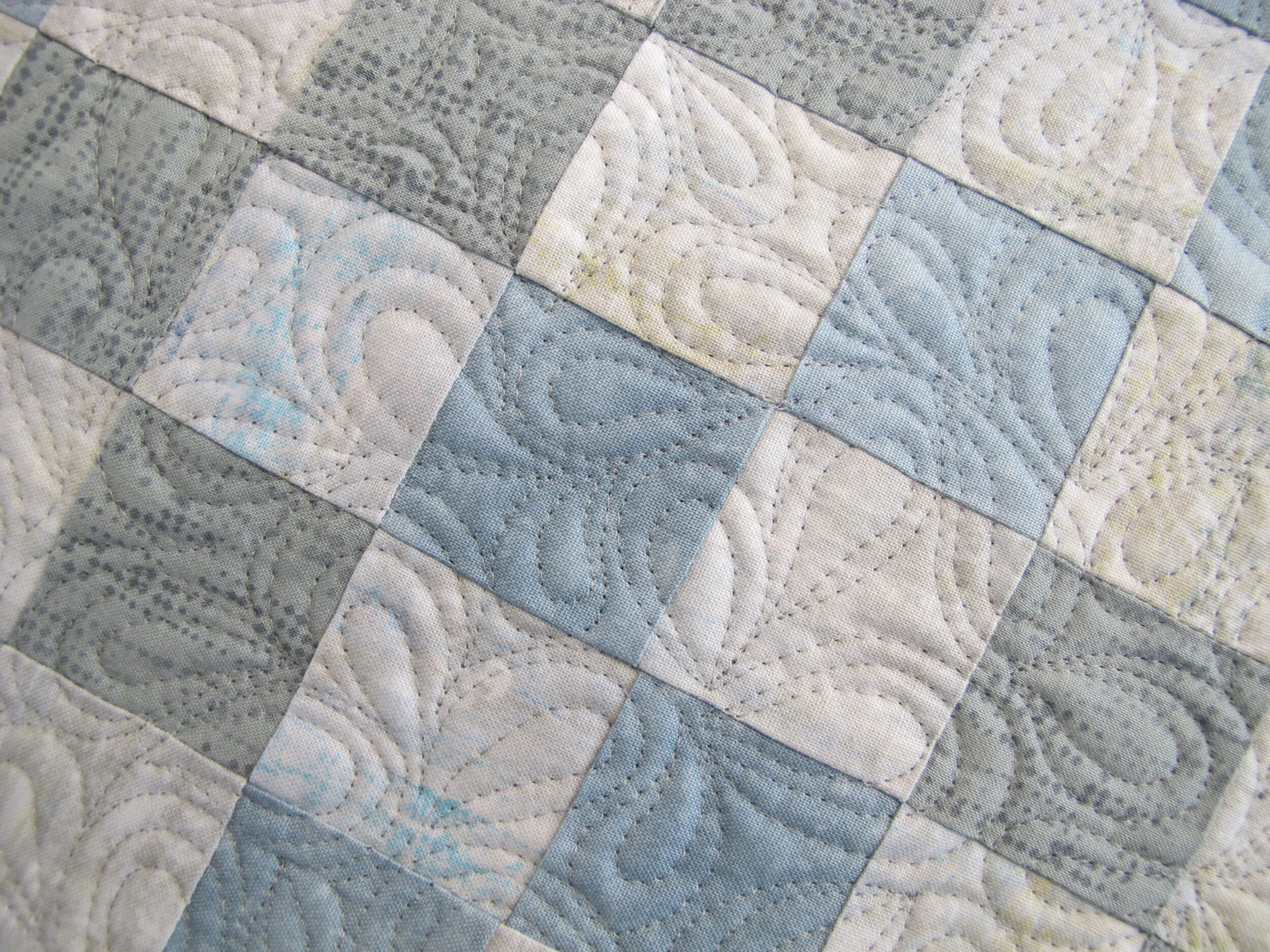 Invisifil often makes its way into my quilting as well. For machine appliqué I love colour 114 (I call it taupe, but the company calls it brown grey). For some reason this one blends into nearly every colour of fabric except super light or super dark, and even then it's not in-your-face noticeable. I also love Invisifil for machine quilting. It's perfect for adding texture instead of highlighting the quilting...great for background filler. Recently I’ve gotten back into English paper piecing and this thread becomes virtually invisible when hand sewing the patches together. (below- brown grey # 114, teal # 607, chartreuse # 702, and on the quilted sample grey # 103)